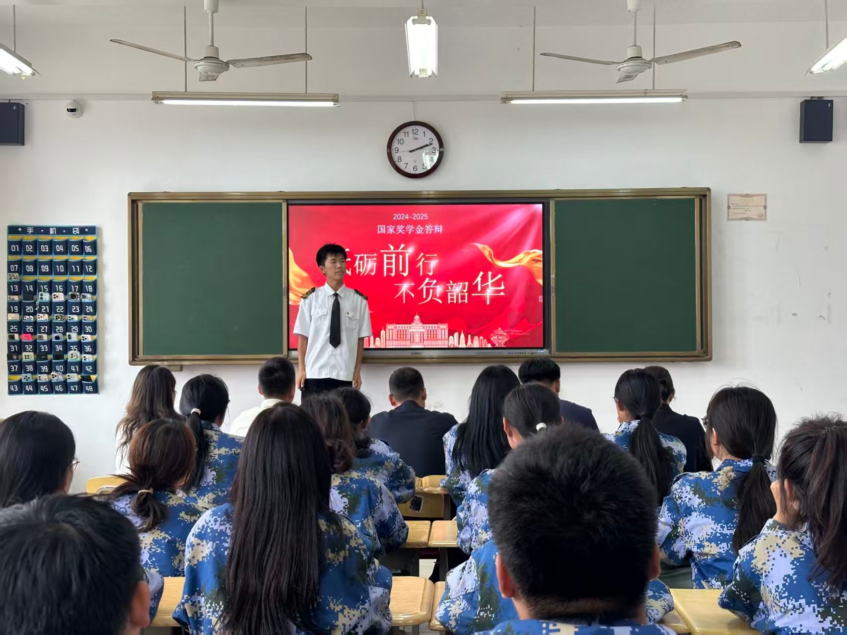 会上,各位候选人依次通过PPT展示,围绕思想表现、学业成绩、工作实践与社会活动等方面进行主题陈述。评委们从PPT制作质量、内容逻辑性、语言表达等多个维度进行综合评分。在随后的问答环节,评委结合陈述内容进行提问,并为候选人提供多维度专业指导。最后纪栋尚作总结发言,他鼓励全体同学珍惜大学时光,不断提升自我,以更加饱满的热情投入到学习与工作中。